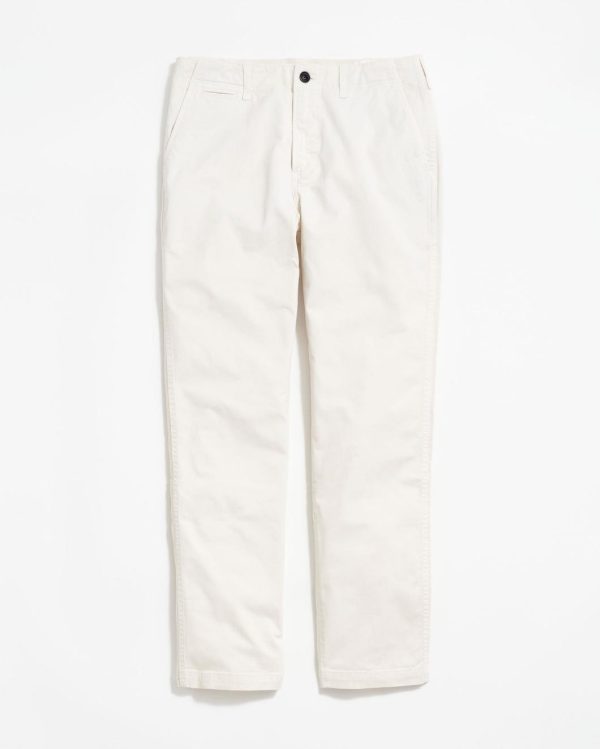 Our Chino Pant is a lightweight, year-round essential woven from ultra-soft cotton in our custom left-hand twill. This weave gives them a beautiful, worn-in feel and a hint of stretch for ease of movement. They feature our Hollywood waistband, a classic construction technique that provides an incredible fit and a sleek, uninterrupted line to the waist. Garment-dyed for a lived-in look and feel and finished with elevated details like reinforced belt loops, twill tape for form and function, a coin pocket, and genuine dark horn buttons.Slim fit through the hip with a standard leg. Mid-rise.98% Cotton, 2% ElastaneMachine wash cold. Line dry, do not tumble dry.Made in Turkey
