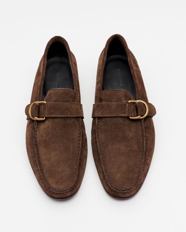 The D-Ring Loafer is our elevated approach to the classic driving loafer. Handcrafted in Italy, the upper is constructed from a beautifully soft calfskin suede, with a fully lined and supple goat leather interior that gives it its structure. The soles are our lightweight comfort flex soles, made from soft leather that offers a broken-in feel right out of the box, and they will perfectly mold to the shape of your foot over time. Finishing touches include an antique brass D-ring closure, hand stitching around the toe, leather binding at the shoe opening, and a stacked leather heel with a heel counter for added support. The D-Ring loafer is timeless and versatile and will only improve with wear.