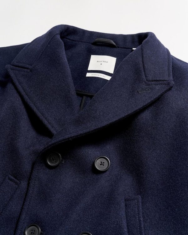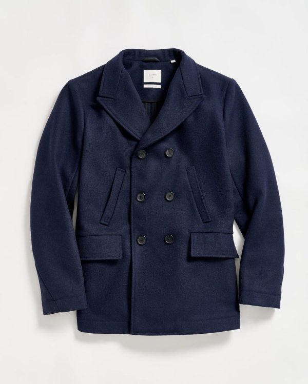 Our first version of the Bond Peacoat dates back two decades. Originally named after our Bond Street store in New York, Daniel Craig famously wore it in the James Bond movie Skyfall. The response to that moment made the peacoat one of our most beloved pieces. Our iconic Bond is made in Italy from warm, sturdy Melton wool and thoughtfully finished with bound seams. This mark of craftsmanship eliminates the need for a liner, reducing bulk and ensuring comfort. The piece is finished with our signature heirloom ribbon stripe embossed on luxe calfskin leather under the collar, handwarmer chest pockets, and genuine horn buttons. It remains an enduring take on a menswear classic.