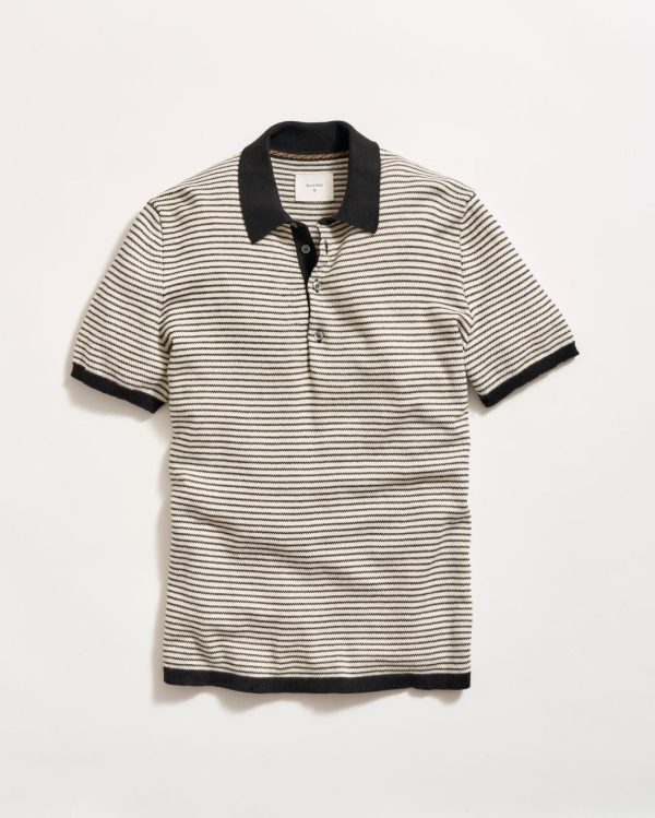 Blending the shape and ease of a polo with the luxurious construction of a sweater, this piece embodies timeless style. Crafted with soft cotton in a jacquard birdseye stripe that adds loft to the sweater’s texture, it’s designed for a slim, tailored fit throughout the body and sleeves. An instant classic that dresses up or down with ease.