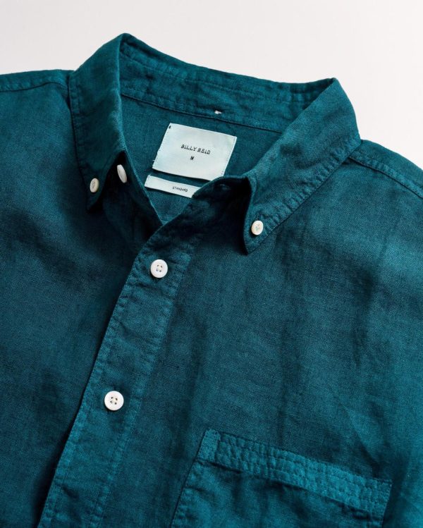 Men Billy Reid Shirting | Short Sleeve Linen Tuscumbia Shirt Button Down Deep Teal