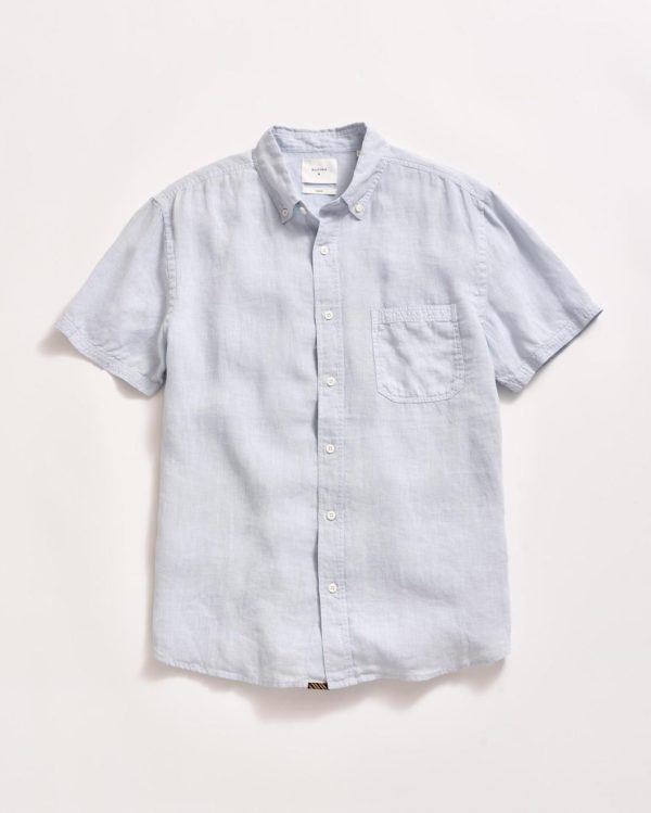 Men Billy Reid Shirting | Short Sleeve Linen Tuscumbia Shirt Button Down Grey Mist
