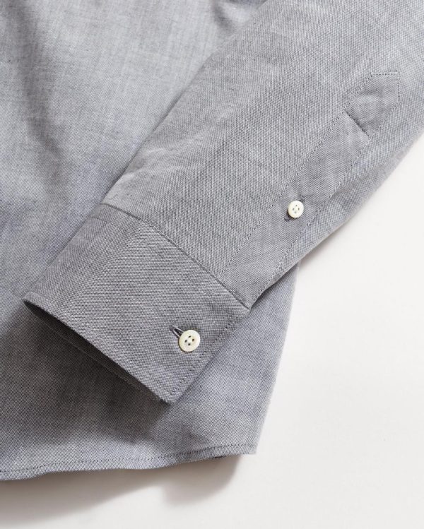 An elevated spin on the Oxford shirt, we’ve paired the fabric of a classic with the construction of a dressier spread collar and pocketless front. This shirt features a standard fit, a silhouette one inch longer than usual for the perfect tuck, and horizontal buttonholes to ensure things stay neat and buttoned. Thoughtful details include genuine mother-of-pearl buttons and gold thread stitched on the bottom buttonhole at the front placket – a distinguishing touch. Dress it up with a tailored jacket and trousers, or dress it down with a rugged leather jacket. It’s versatile, comfortable, and rounds out your wardrobe beautifully.