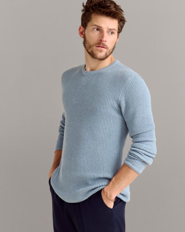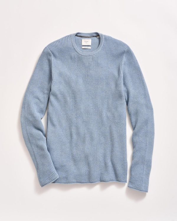 Our bestselling cotton-cashmere Mini Waffle Crew is ultra-soft, lightweight and features a reverse waffle weave at the elbows and jersey roll at the hem. It’s finished with thoughtful Billy Reid design details, like our signature heirloom ribbon stripe at the back neck. It’s a versatile transition piece that can effortlessly be worn alone or layered underneath a sweater or jacket.