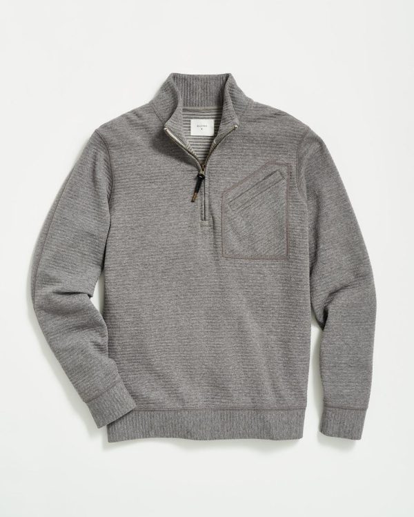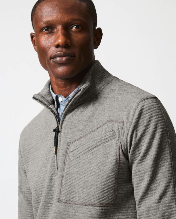 This lightweight half-zip is the perfect transitional layer, made from a comfortable cotton blend and finished with smart details like a subtle quilted stripe, an asymmetrical chest pocket, handsome elbow patches, and our signature ribbon stripe at the zipper and cord puller.