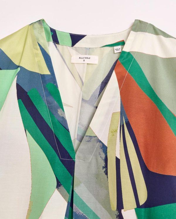 Women Billy Reid Dresses | Collage Tropical Silk V-Pleat Maxi Dress Green Multi