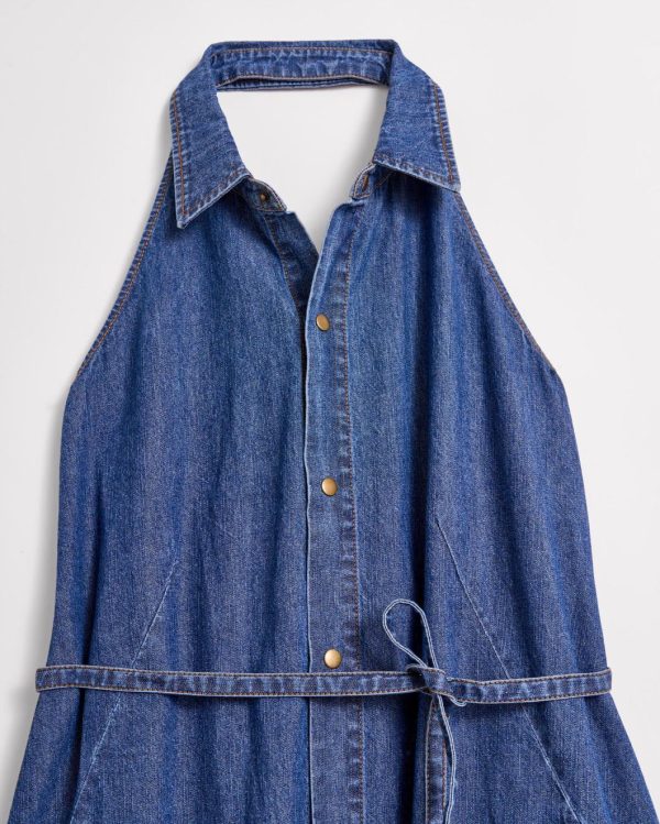 Crafted from 100% cotton fabric—the same material used to create our iconic Shoals Denim Shirt—the Denim Halterneck Shirt Dress is built for comfort and ease without sacrificing an ounce of style. It’s built with a trapeze in a maxi length, and has on-seam pockets on either side and a self belt to customize the fit.
